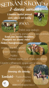 Koně nás učí, že láska je více než jen slovo – je to zážitek, pohled, dotek. Během semináře se naučíte, jak tento jazyk lásky používat a jak se otevřít lásce v její nejčistší formě. Je to cesta k poznání sebe sama a k odhalení obrovského potenciálu, který se skrývá v každém z nás.